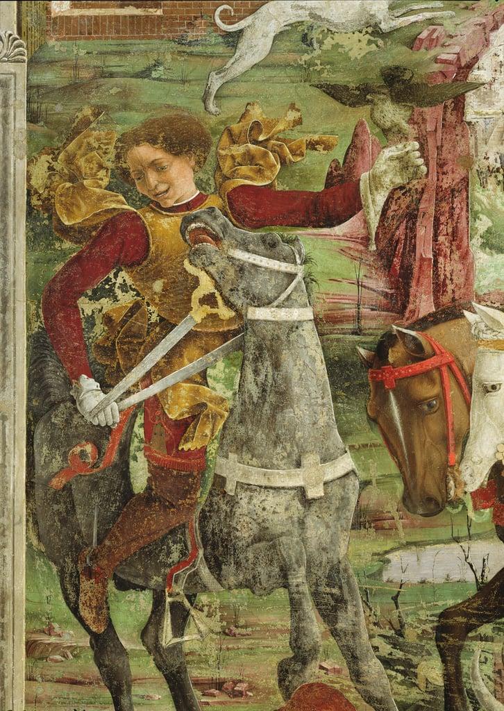Allegory of March: Borso d'Este, prince of Ferrare leaving for the hunt, detail with a falcon, 1469-