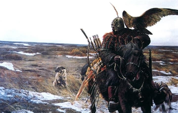Ancient Chinese Falconer by Wang Kewei (1950) Dandong, Liaoning province, China