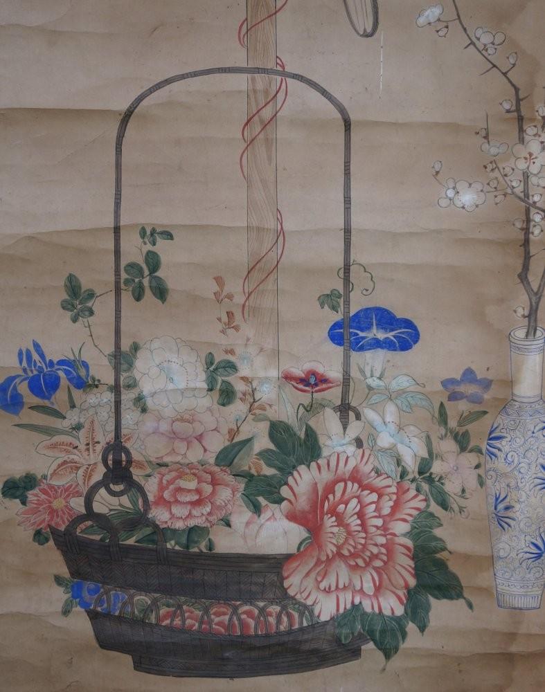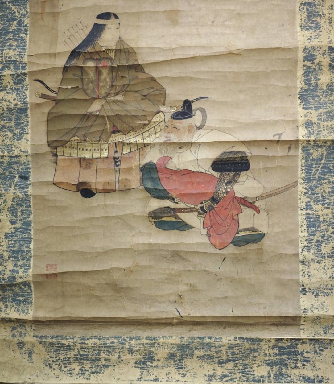 Antique Japan falconry painting Edo era craft 1800 watercolor scroll