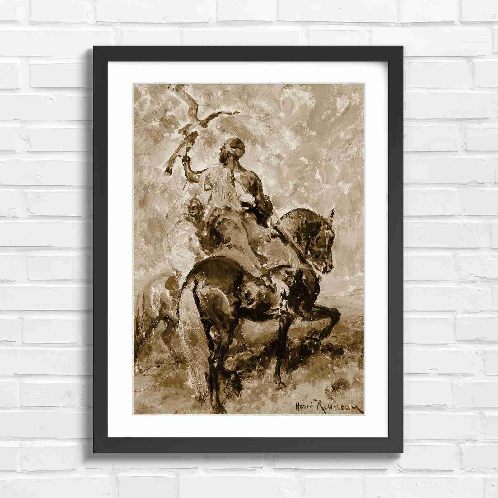 Arabian Horse Hunter Falconry Sepia Framed Wall Art Print Large Picture Home