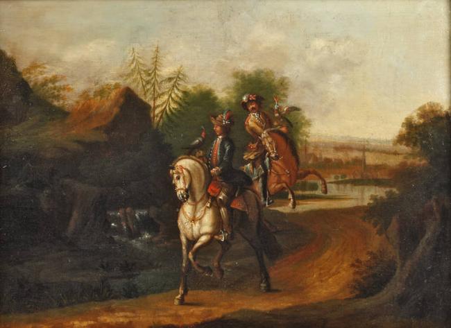 Baroque hawking in the kind of Phillips Wouerman (1619-1668)