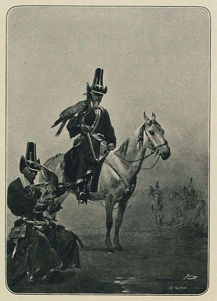 Baskhirs with falcons (in reality with eagles) by Mihály Zichy (1826-1907)