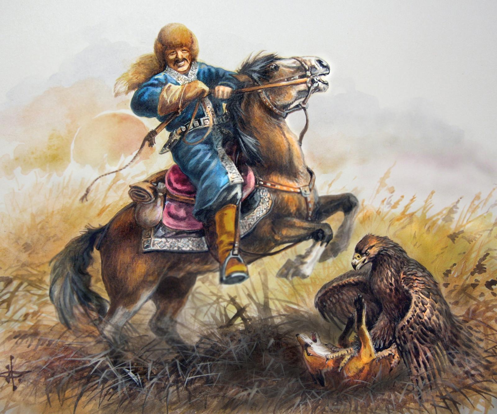 Berkutchi by Abylkhan Kasteev (1904-1973) - series "Art of Kazakhstan"