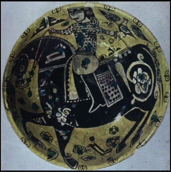 Bowl with depiction of a Falconer on Horseback,10th Century.