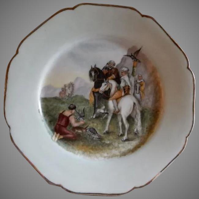 Charles Haviland Hand Painted Cabinet Plate w/Mystical Falconry Motif - 1 of 7