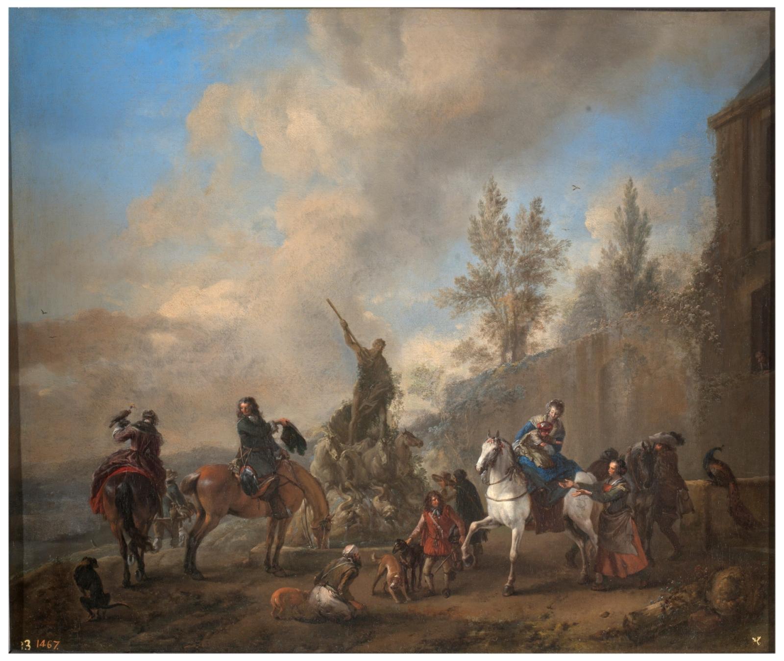 DEPART FOR THE HUNT (FALCONRY) by Flemish artist Pieter Van Bloemen (1657-1720)