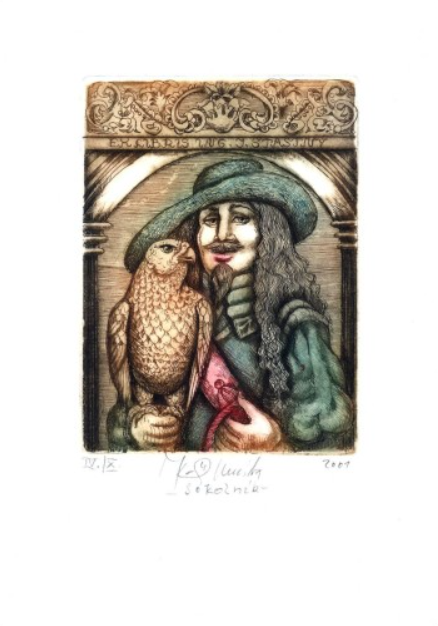 Exlibris - Kaiserova 2001 Exlibris C3 Falconer Falcon Bird 139