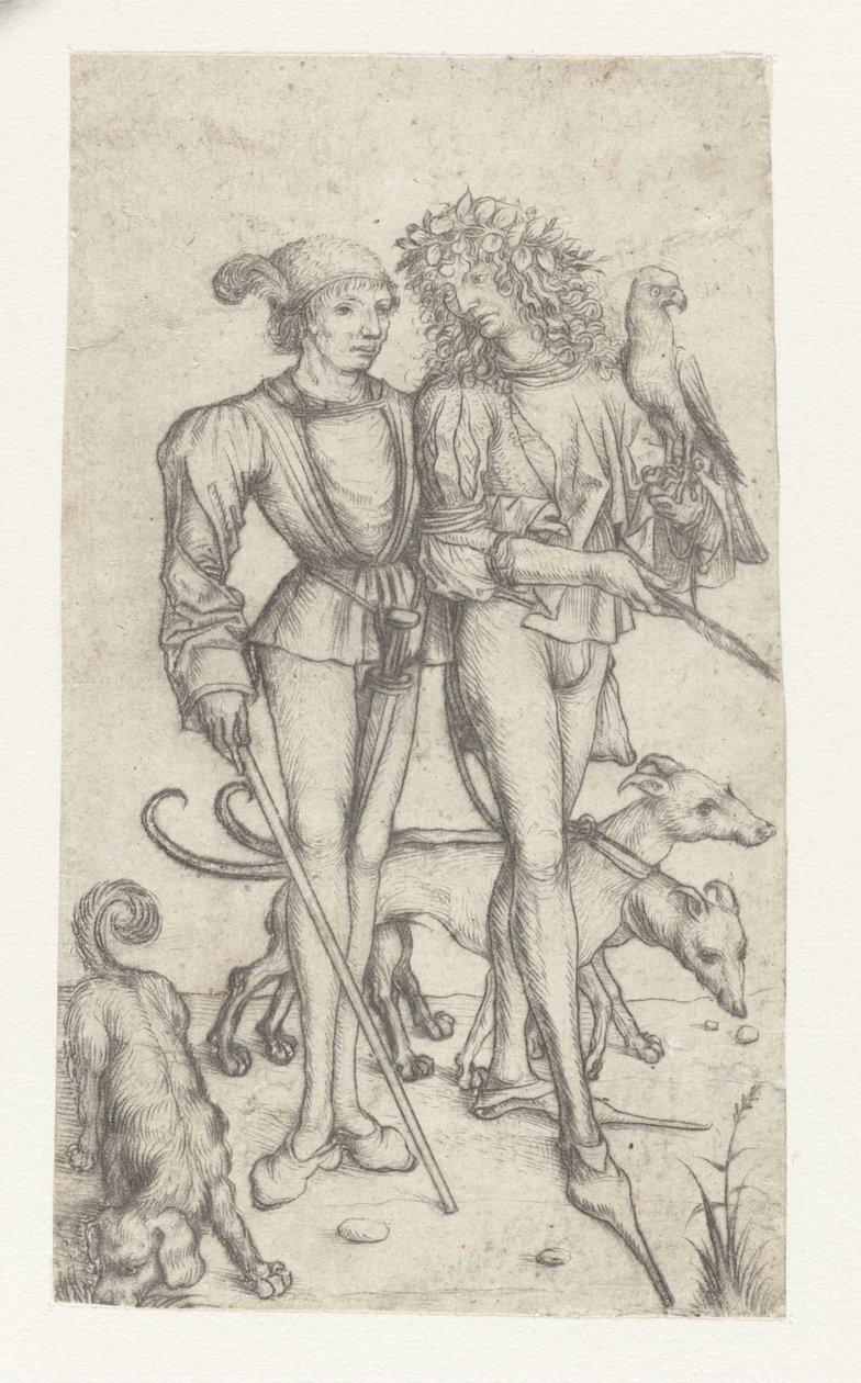 Falconer and companion by master of Amsterdam Cabinet (print maker), Master of Amsterdam Cabinet (after own design by)