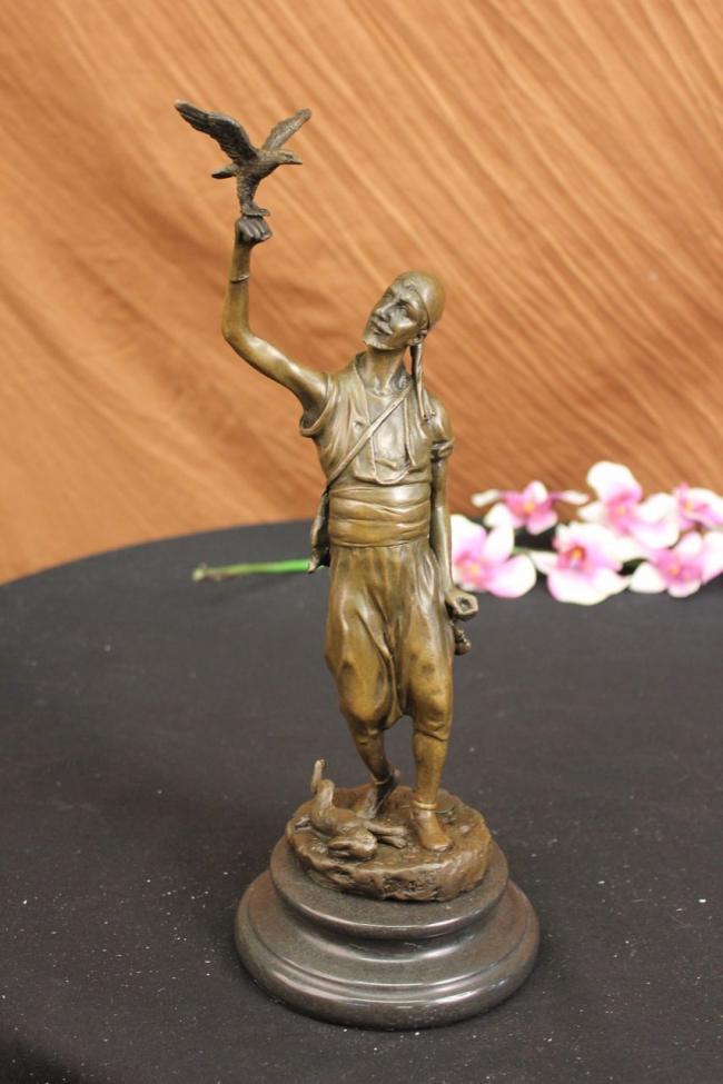 Falconer Bronze Statue Sculpture Falcon Hot Cast Marble Base Sculpture Figurine