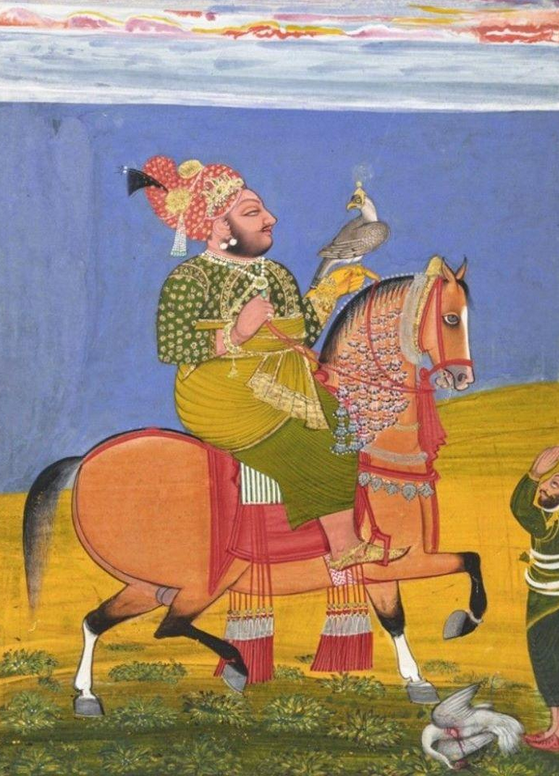 "Kunvar Anop Singh Hawking". Attributed to (Bagta). Deugarh, Mewar, Rajastan. (circa - 1777).