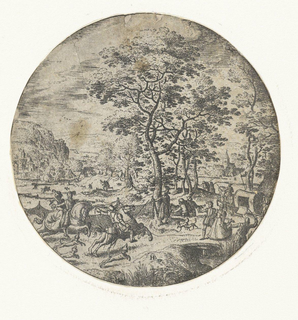 Falconry by Hans Bol (1534-1593) (print maker) , Hans Bol (possibly) (after own design by)