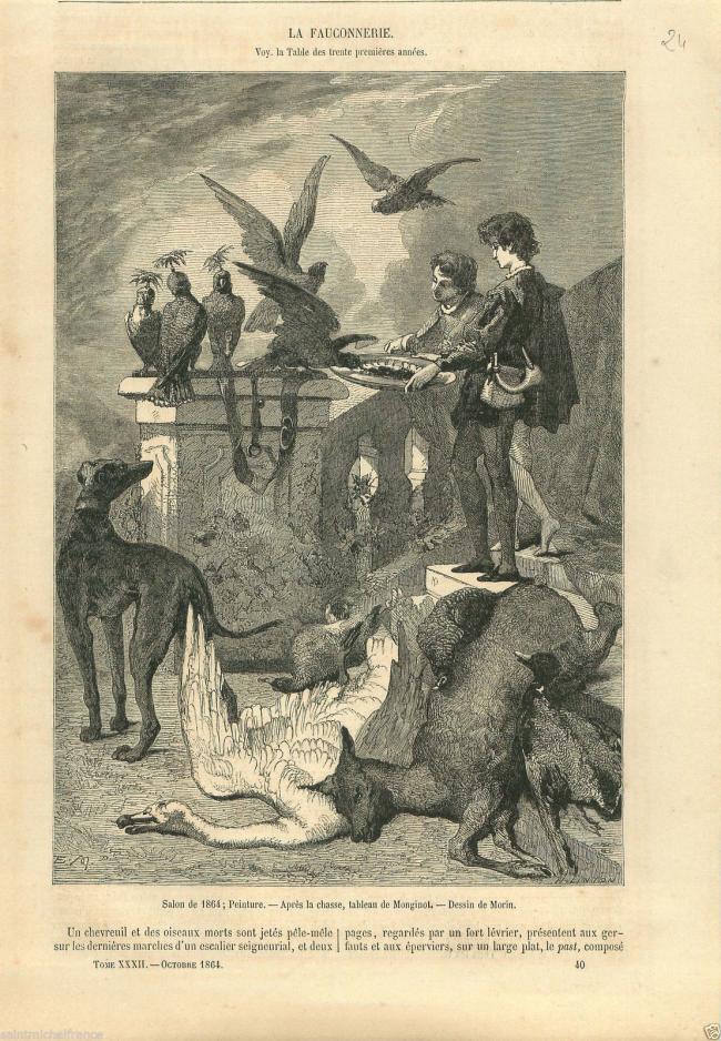 Falconry Falcon Fauconnerie Faucon Chevreuil Oiseau GRAVURE ANTIQUE PRINT 1864
