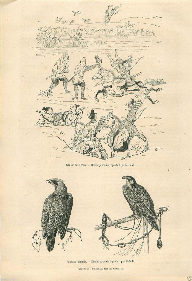 Falconry Fauconnerie Hunting Hunter Faucon falcon Japan Japon GRAVURE PRINT 1866