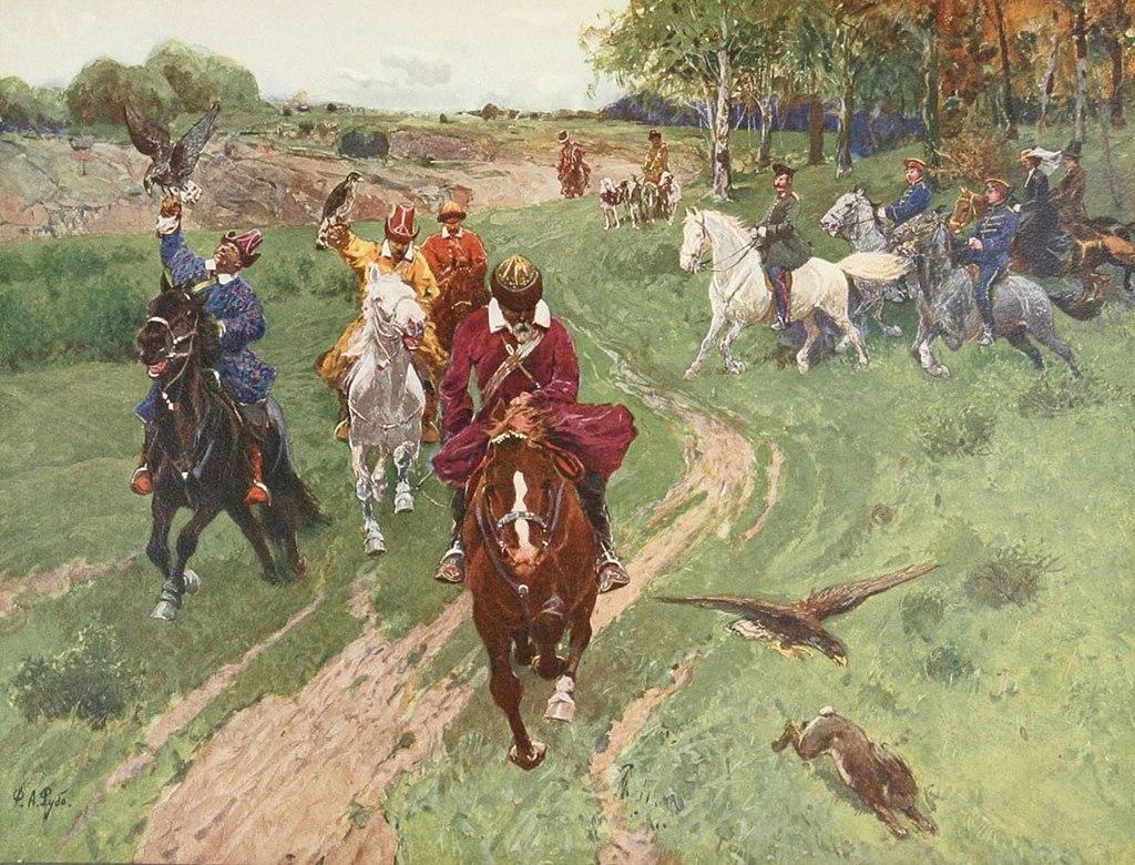 Falconry of Bashkirs in the presence of Emperor Alexander II by Franz Rubo (Roubaud) (1856-1928)