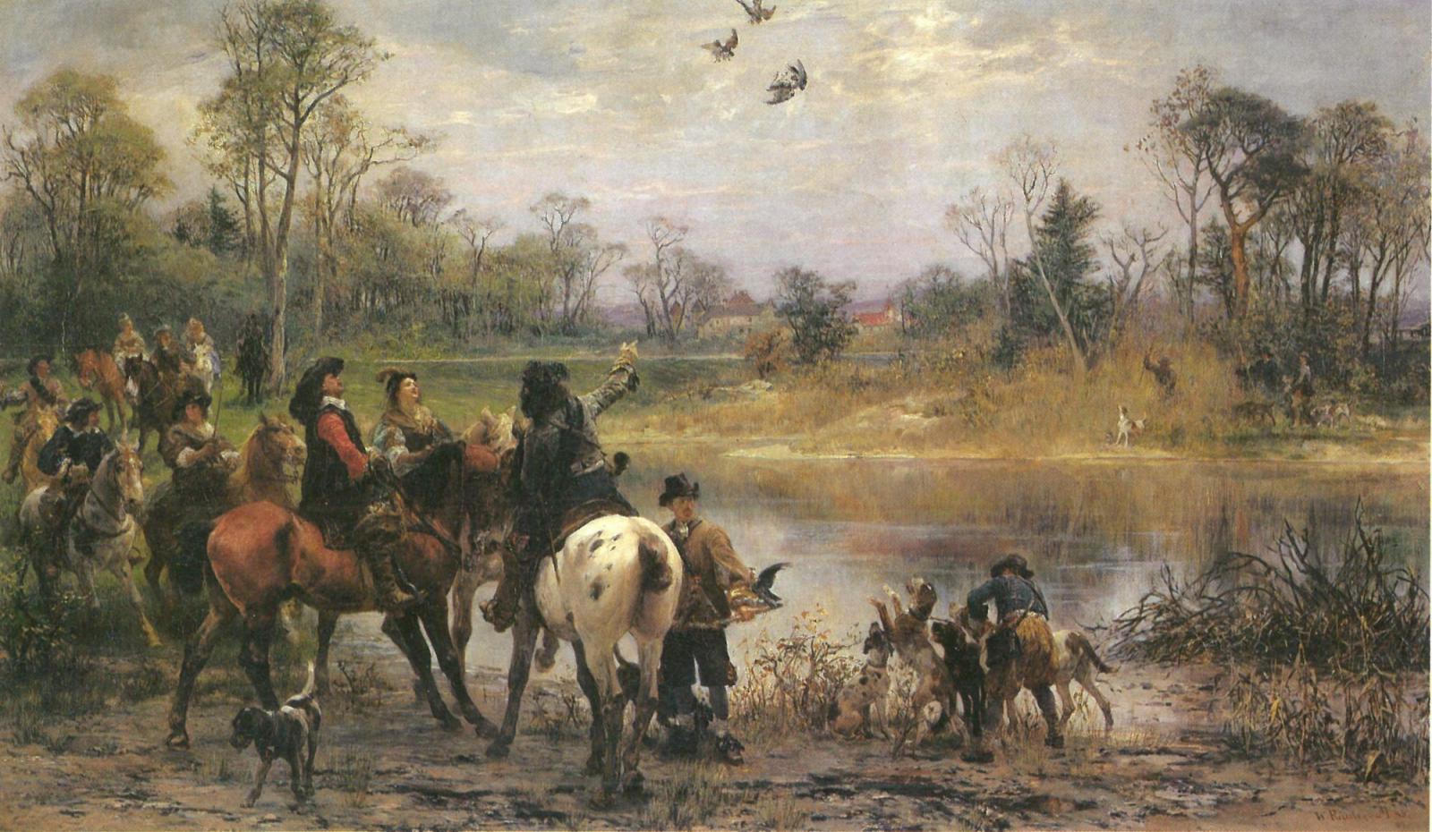 Falconry near lake by Wilhelm Rauber made in 1885