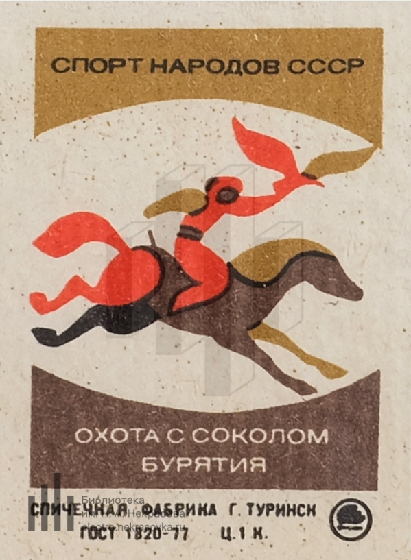 Falconry. Buryatia. Matchbox label made in Turinsk and Kirov