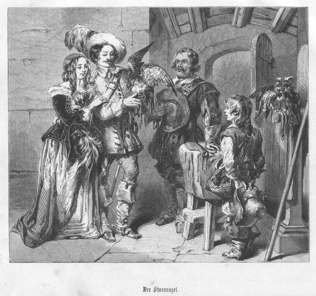 Falkner, Beizjagd, Falken,der Stoßvogel, Original-Holzstich von 1859