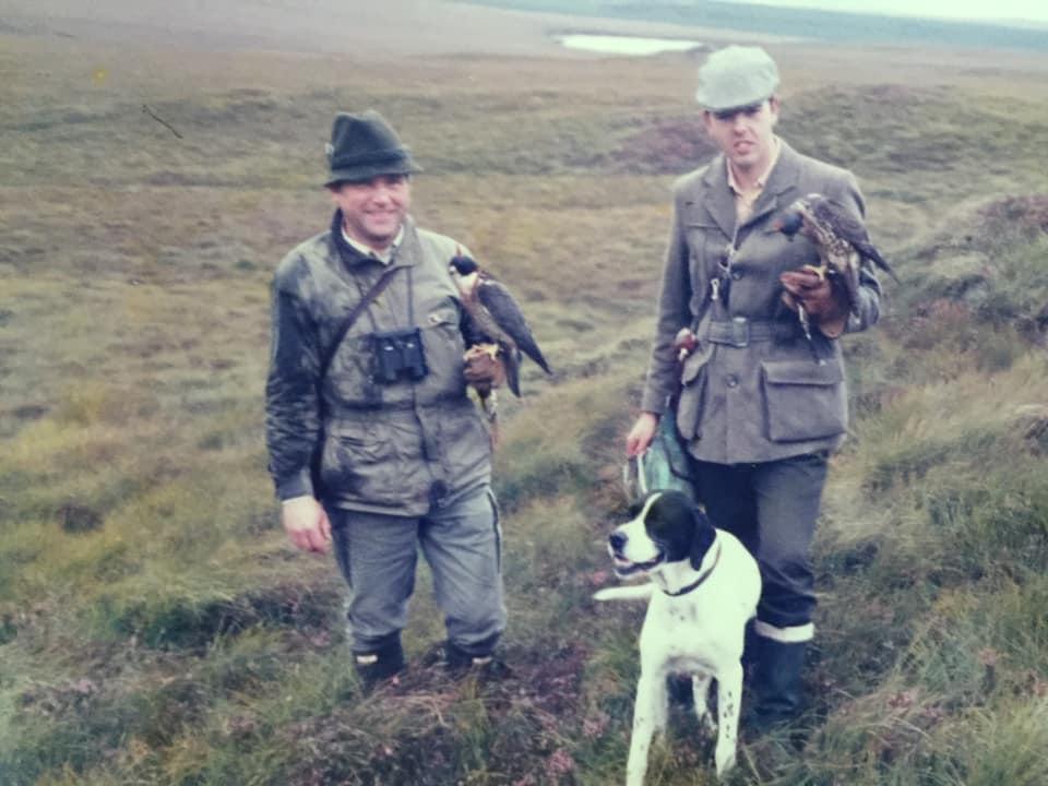 Famous German falconer Eckart Schormair with Casper and British falconer Simon Tyers in the 1980's.