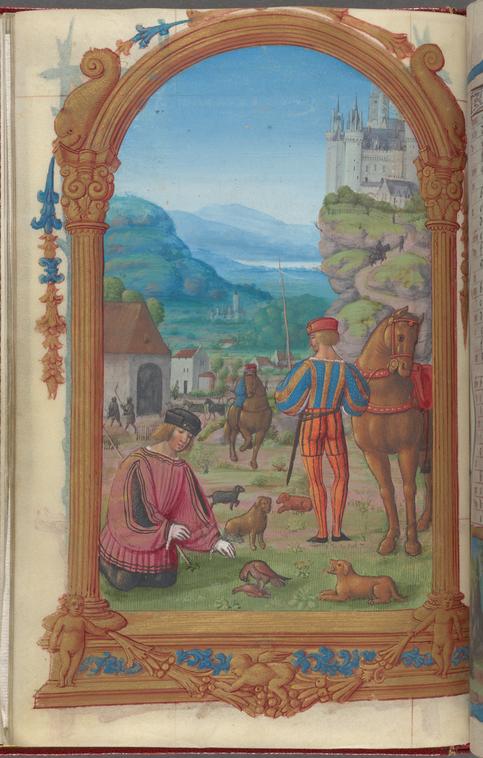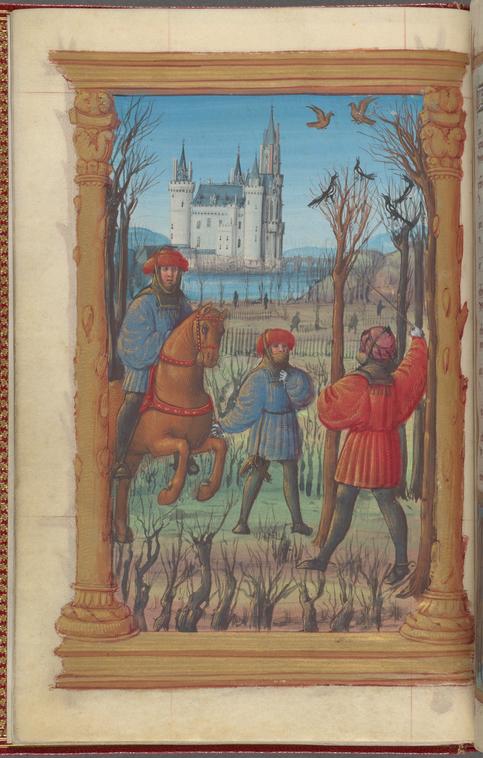 Full-page miniature of falconry, in February, fol. 3v