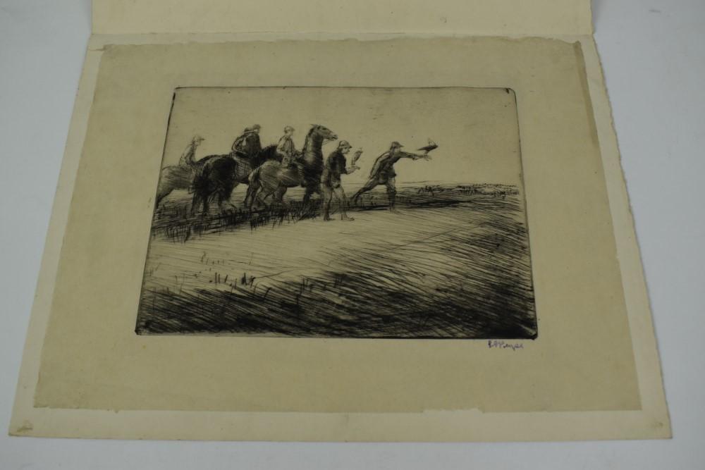 A hawking party near Salisbury Plain by Gerald Spencer Pryse (1882-1956)