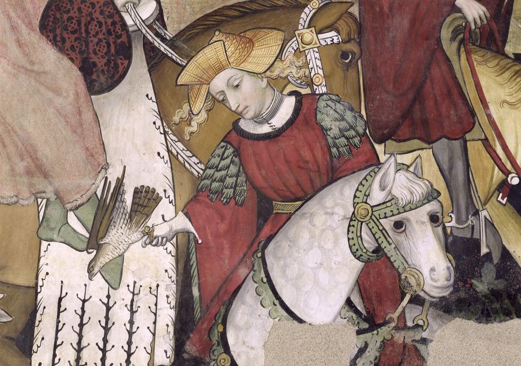 The Fountain of Life, detail of a falconer releasing his bird, 1418-30