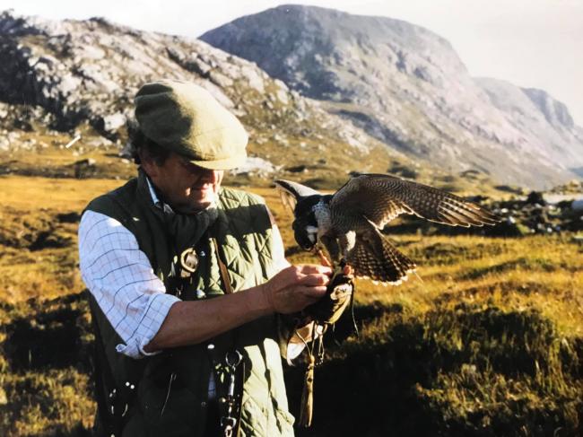 The late John Fairclough with Winnie a 3-4 Peregrine x 1-4 Gyr son of the great Hob flown by Paul Gi