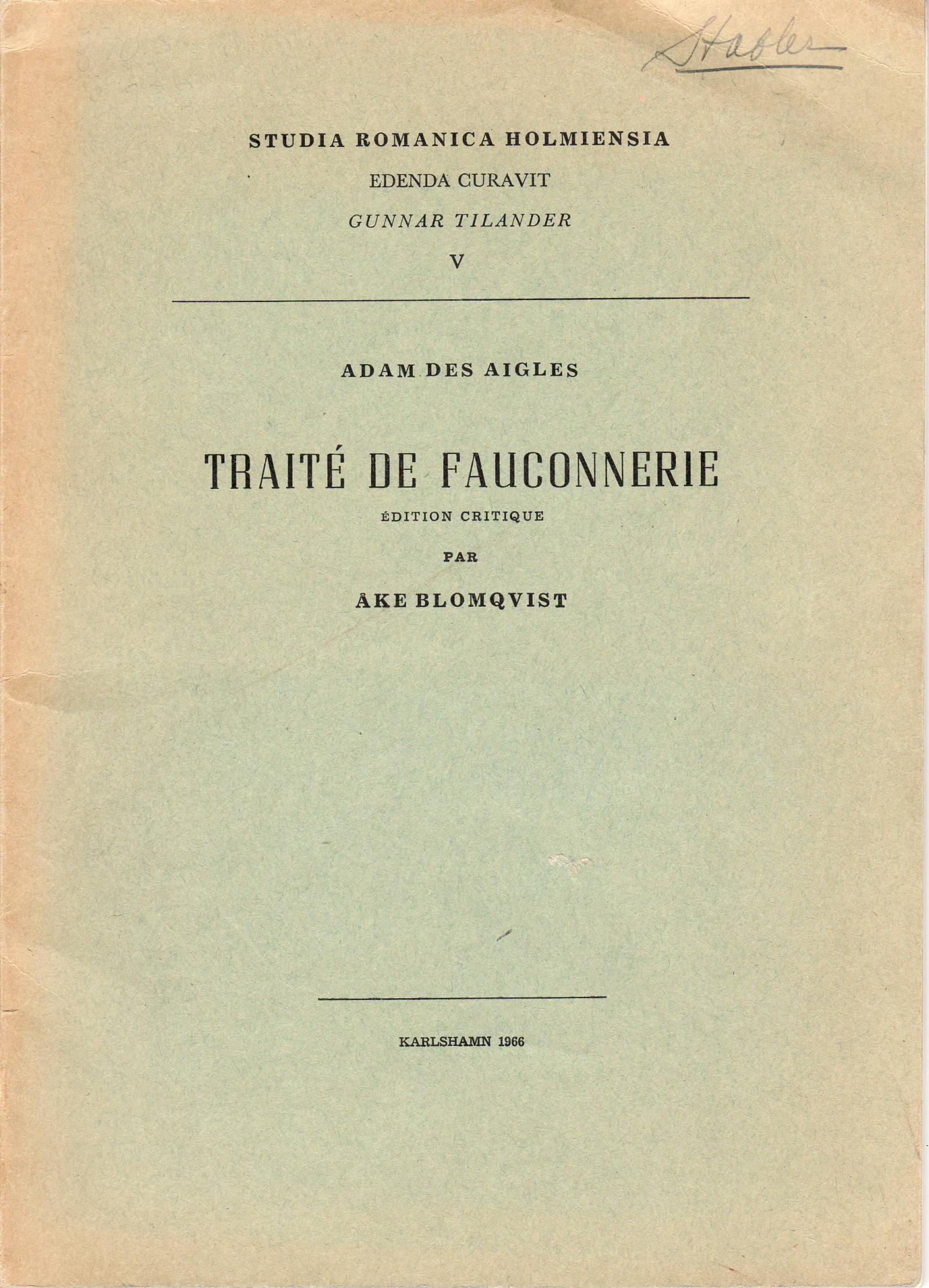 TRAITE DE FAUCONNERIE by H. Schiegel