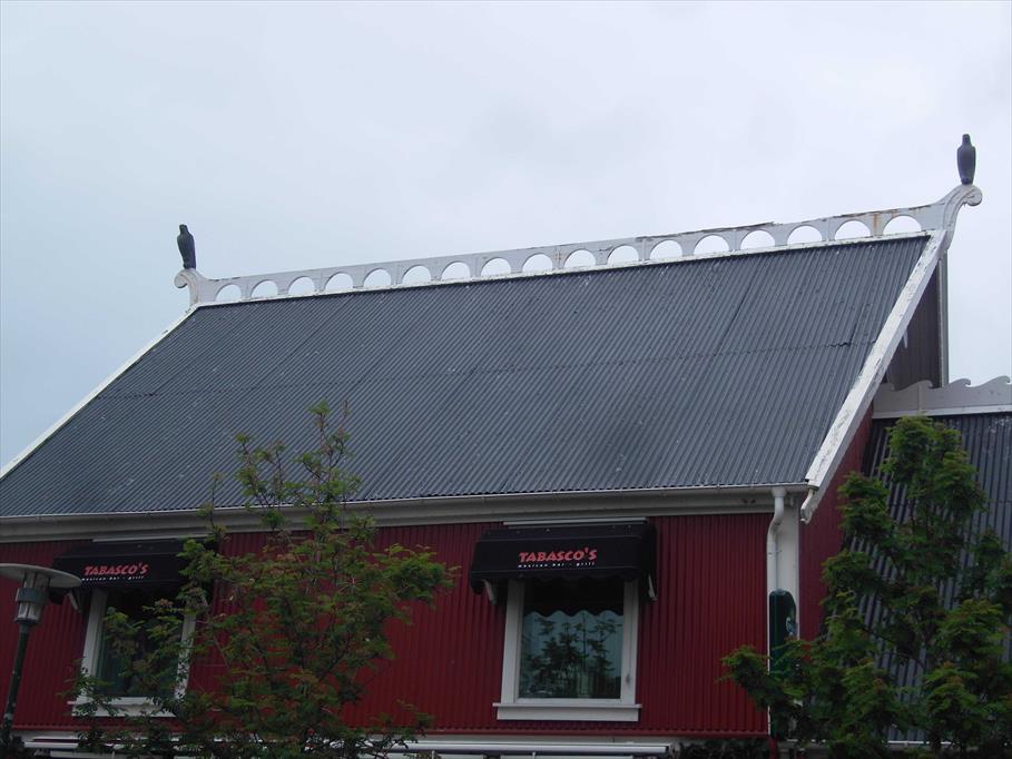 Two sculptures of gyrfalcons on Falkahusid (Falcon House) in Reykjavik, Iceland