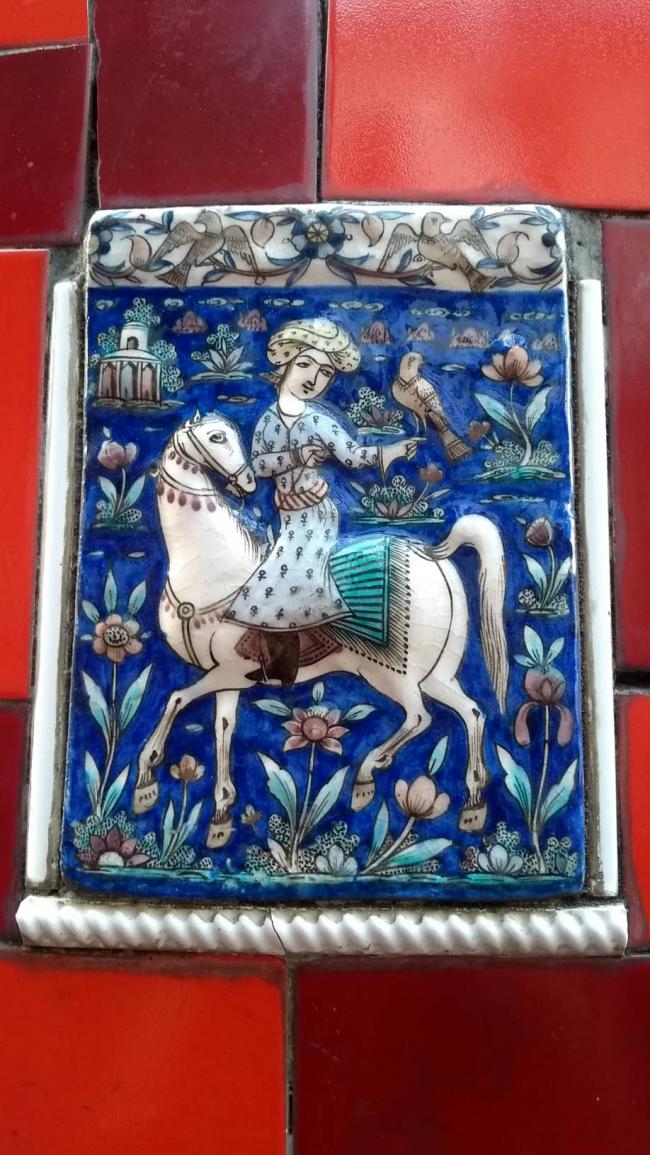 Two small Middle Eastern watercolours, a falconer on horseback and deer hunting, gilt framed