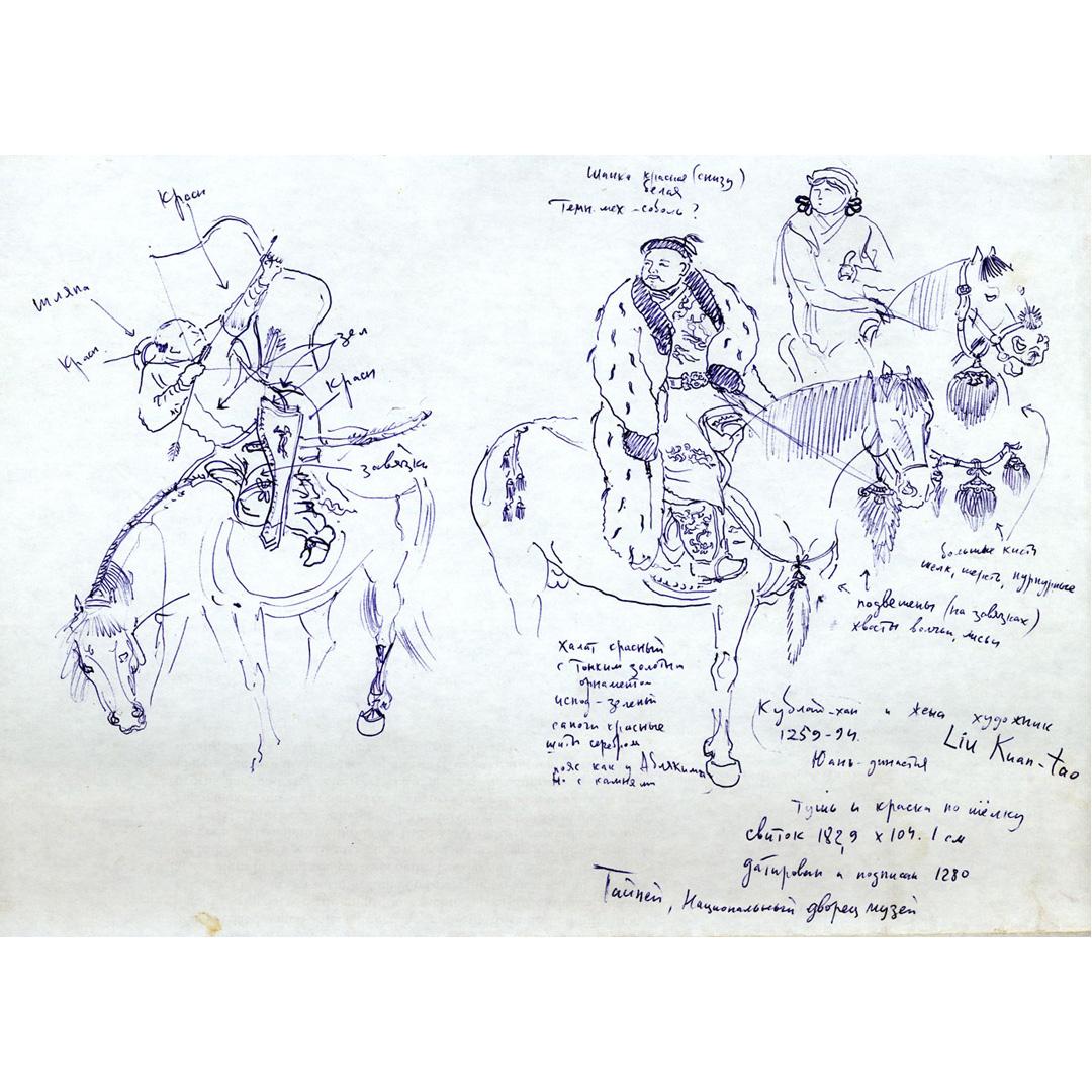 Working documents (Sketches of illustrations) for "Falconry of Kublai Khan" by Russian artist Vadim