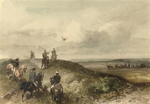 A royal hunting party: Queen Emma on a falcon hunt by Charles Rochussen