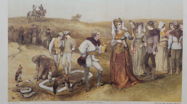 Falconry antique 19th century Zeeland school print with image of falconry Hawking Loo Club